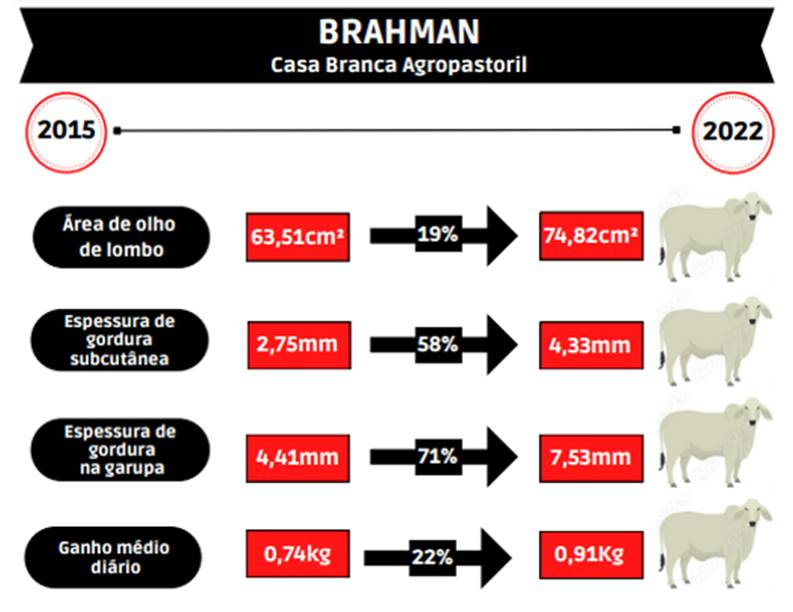 Para a profa. Sarah Meirelles, essa evolução confirma que a Casa Branca está preocupada em fornecer aos seus clientes animais cada vez melhores, tanto na qualidade da carcaça quanto para diversas outras características avaliadas nas provas. Ela destaca ainda a busca por animais mais eficientes que ingerem menor quantidade de alimentos, mas que não deixam de ganhar peso e depositar gordura na carcaça, trazendo mais lucratividade ao produtor rural.