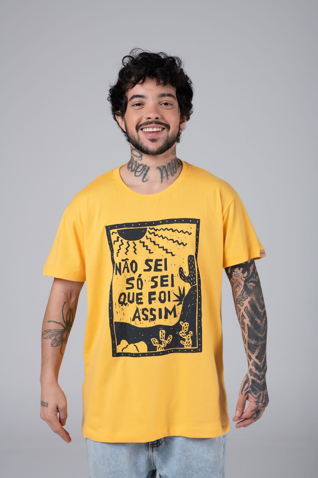 A Camiseta João Grilo com malha tradicional, possui material sustentável e é feita com 100% de fibra natural de algodão sustentável. E é estampada em processo de serigrafia.