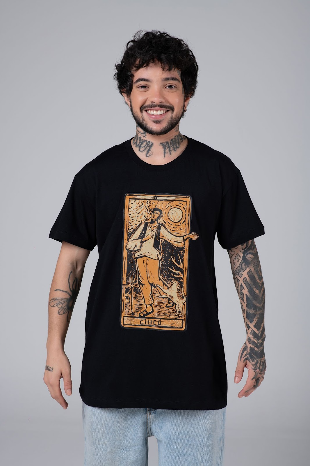 A Camiseta Chicó com malha tradicional, possui material sustentável e é feita com 100% de fibra natural de algodão sustentável. E é estampada em processo de serigrafia.
